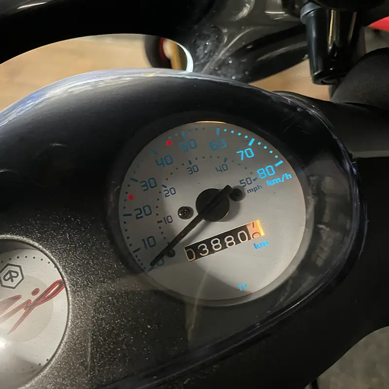 Sehen Sie sich die Liste der Sonderausstattungen unten auf der Seite an oder kommen Sie vorbei, um den Roller mit eigenen Augen zu sehen und eine Probefahrt zu machen, während wir Ihre Mutter oder Ihren Vater mit einer Tasse Kaffee ablenken.