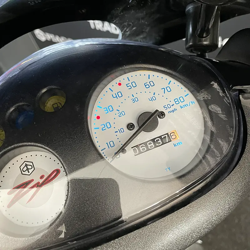 LED turn signals, runner mirrors, black rims, folding carrier, RS buddy cover and so on. Also equipped with a Malossi ECU.